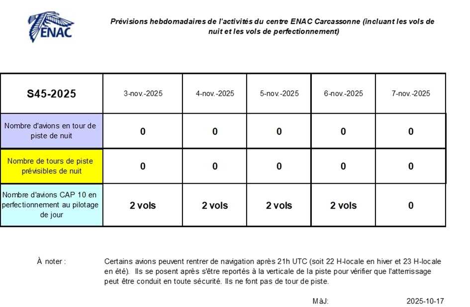 ENAC : Prévision Semaine 45